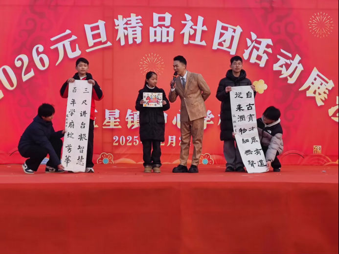 辞旧迎新歌盛世,五育并举育新苗。为深入推进“五育融合”育人理念,丰富校园文化生活,展现学生社团建设成果与少年学子的昂扬风采,12月24日,太和县五星镇中心学校隆重举办迎2026年元旦精品社团活动展演,全体师生欢聚一堂,共赴一场兼具思想性、艺术性与观赏性的文化盛宴。