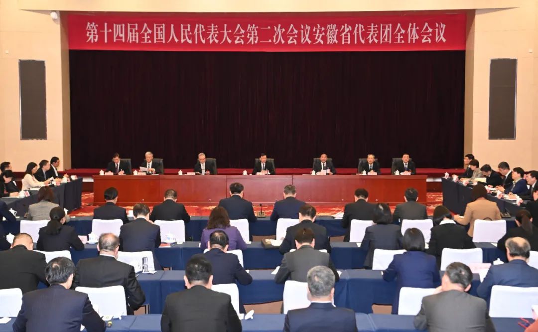 据安徽日报报道,3月3日下午,出席第十四届全国人民代表大会第二次会议的安徽代表团在北京成立,并举行全体会议。省委书记、省人大常委会主任韩俊主持会议并讲话。