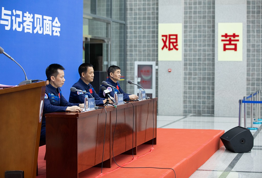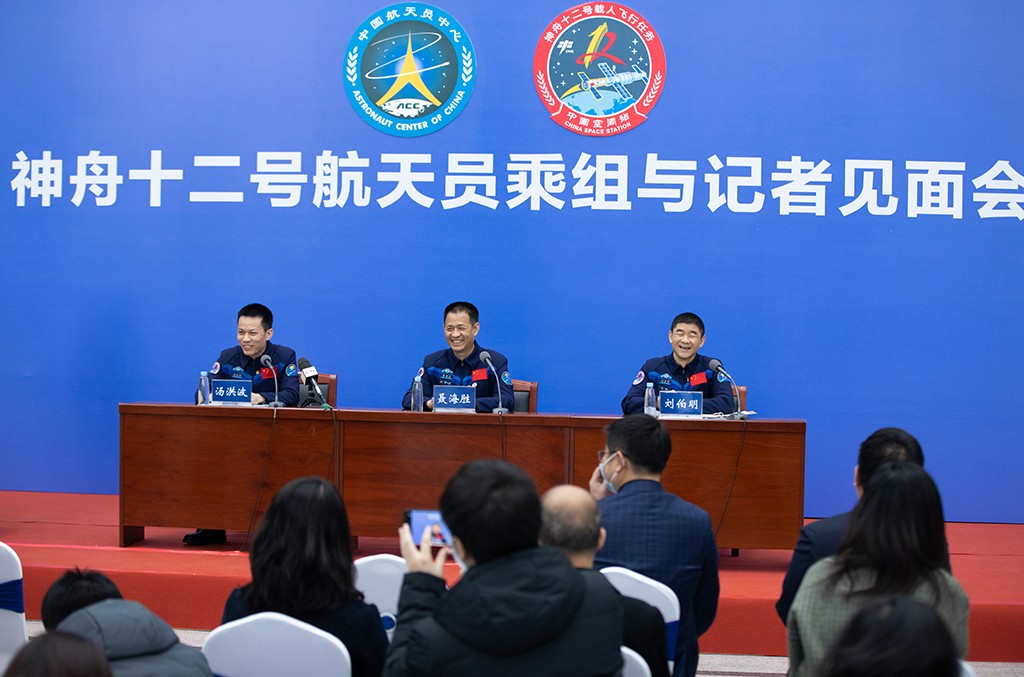 12月7日,中国航天员科研训练中心在北京航天城举行神舟十二号航天员乘组与记者见面会。这是神舟十二号乘组返回后,首次与媒体和公众正式见面。