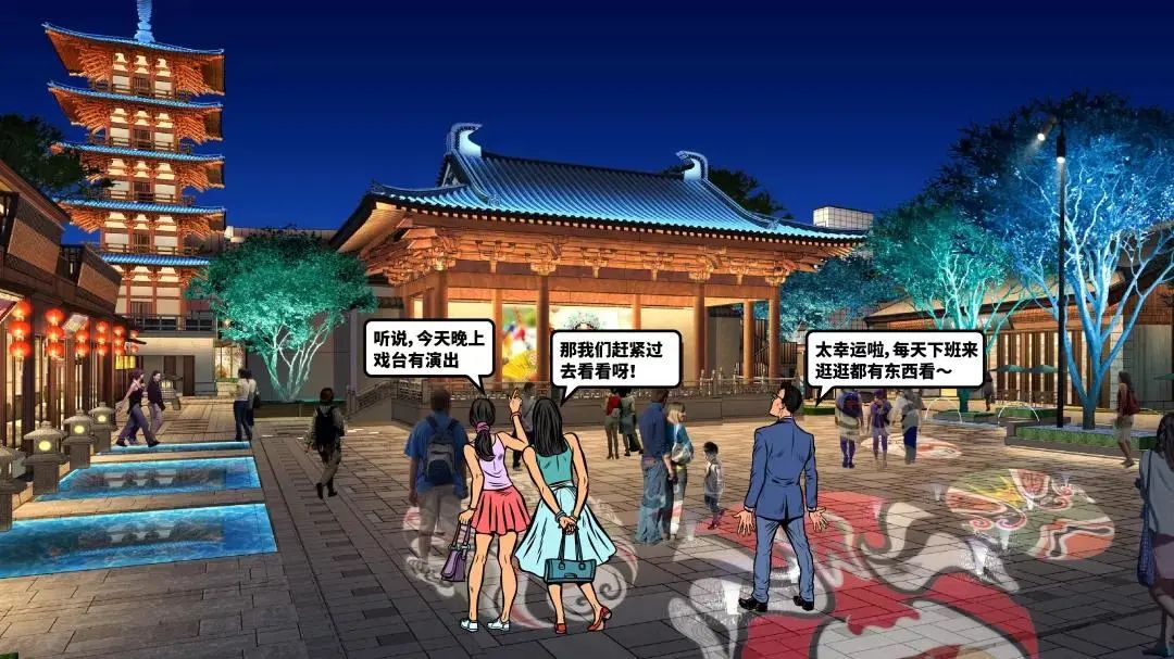 并建设戏台广场、双清湾书院等现代唐风建筑,创造性地将文化、旅游、休闲娱乐等需求有机结合。