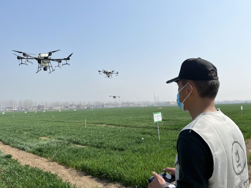 此次大赛内容包括理论测试与场地操作两部分,按照春季小麦田管要求,进行了指定地点启停、平稳飞行程度和高度、界定区域内施药质量等多项考核,以此来评判操作无人机植保作业的优劣。