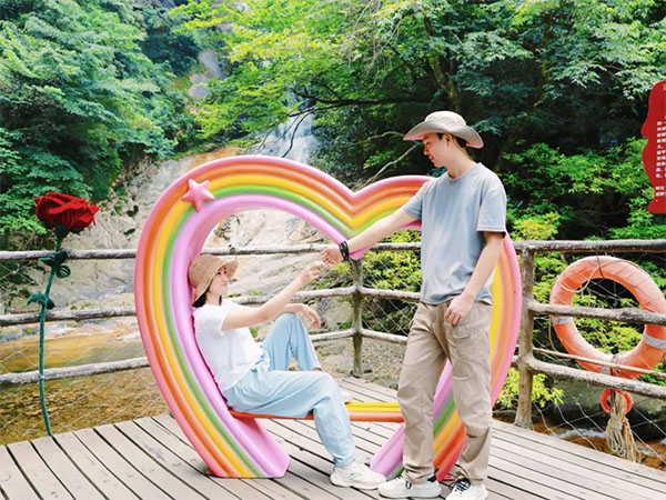 漫步在天堂寨的幽静山谷与飞瀑流泉之间,别忘了参与我们的“甜蜜打卡”活动。只需将两人在景区内打卡拍摄的甜蜜合照分享至朋友圈,即可在游客中心领取精美礼品一份。(礼品为景区文创产品,数量有限送完即止)。