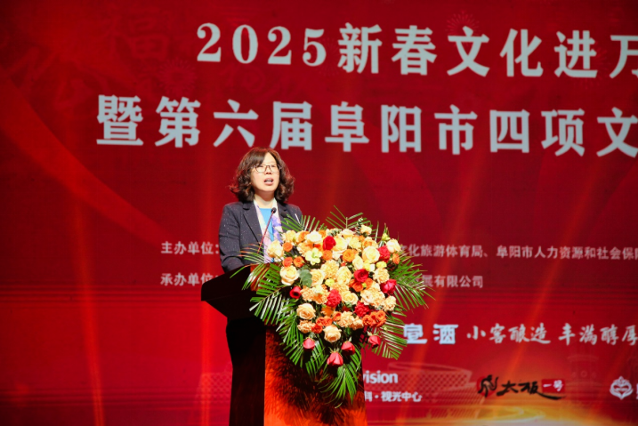 阜阳市文化旅游体育局局长纪兰芳率先登台致辞,她表示在过去的一年,阜阳在文化、体育、美食领域热度高涨。管子文化旅游节、阜阳马拉松等百余场大型活动,斑马音乐节,以及特色美食,让阜阳频频登上热搜,备受关注。这背后离不开每位阜阳人的热情参与和无私奉献。大家都在为城市文化添砖加瓦。